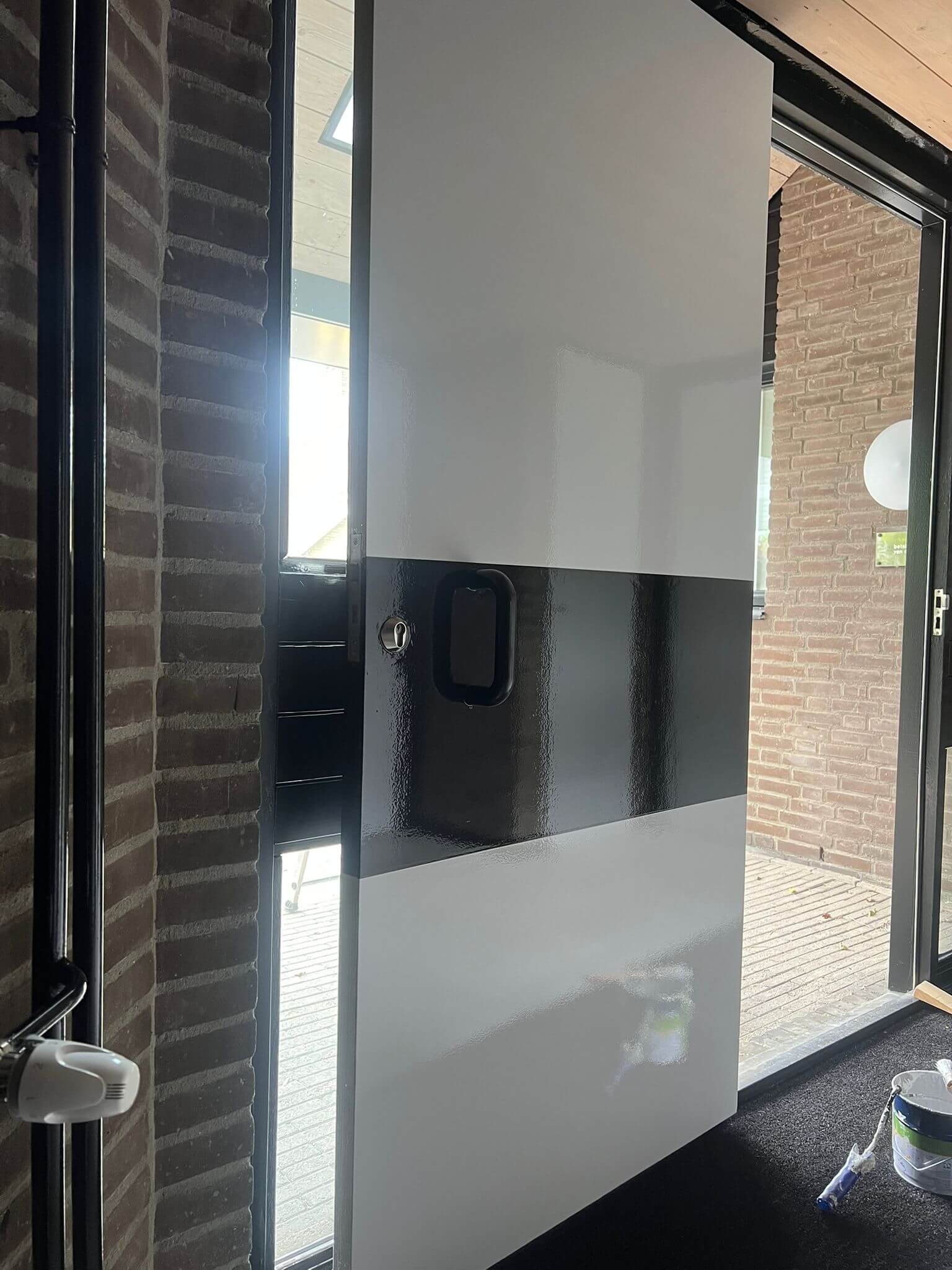 Hoe strak wil je het hebben? Voor een particuliere klant in Raamsdonksveer hebben we deze deur een compleet nieuwe look gegeven. Met een opvallend zwart-wit contrast, hoogglans afwerking en strakke lijnen is dit schilderwerk een echte eyecatcher geworden.